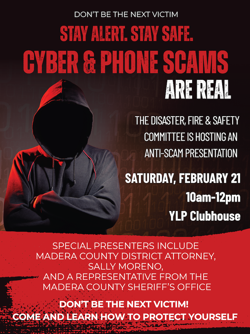 Join us for a special presentation by Madera County District Attorney Sally Moreno for an informative session on how to avoid internet and phone scams. Online scams trick people into giving up money or personal data through fake emails, texts, websites, or calls, common types being phishing, imposter scams (fake tech support, government), romance, job, […]