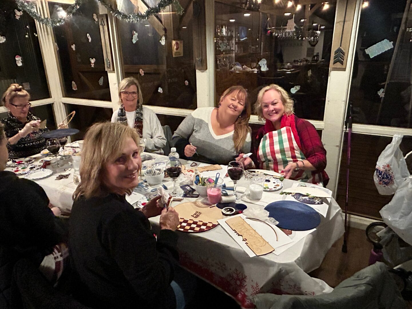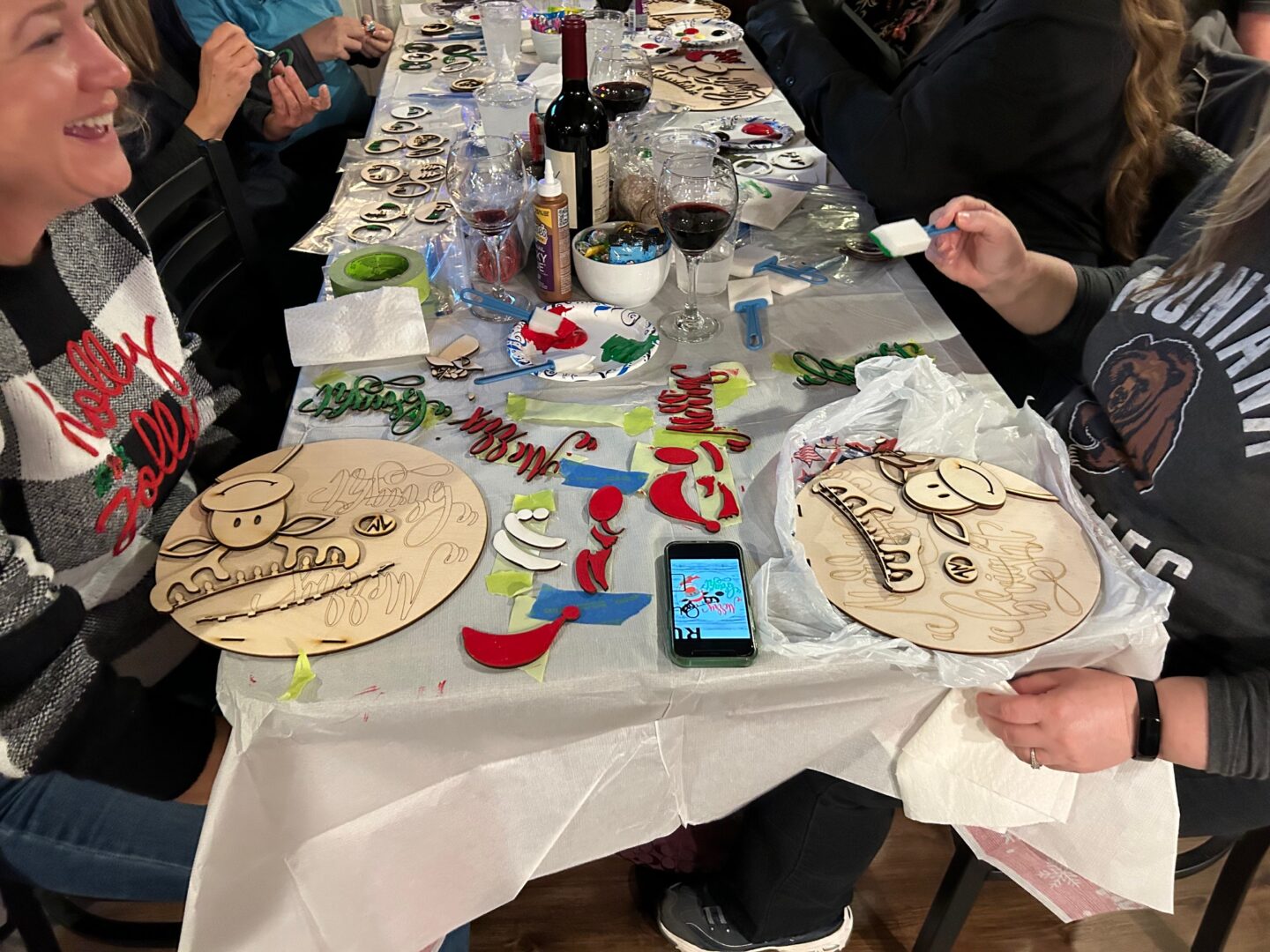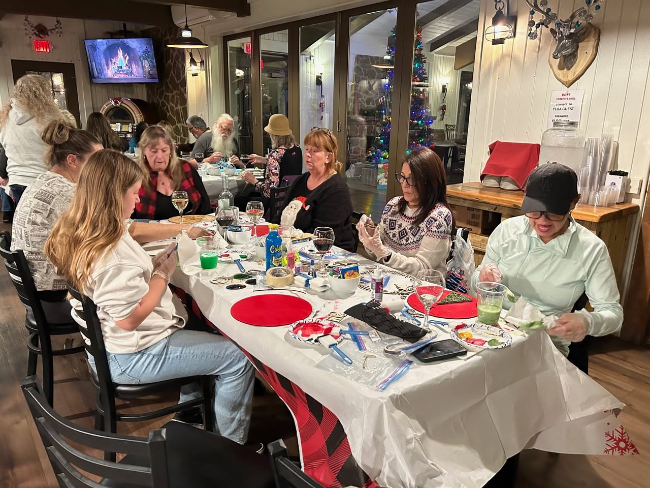 The event brought together 27 YLP residents for an evening of holiday crafting and wine. Participants chose between creating a 10-inch laser-cut wooden holiday door hanger or a set of four smaller wooden ornaments. Each kit included detailed pieces, along with paint, glue, glitter, and ribbons to personalize the decorations.