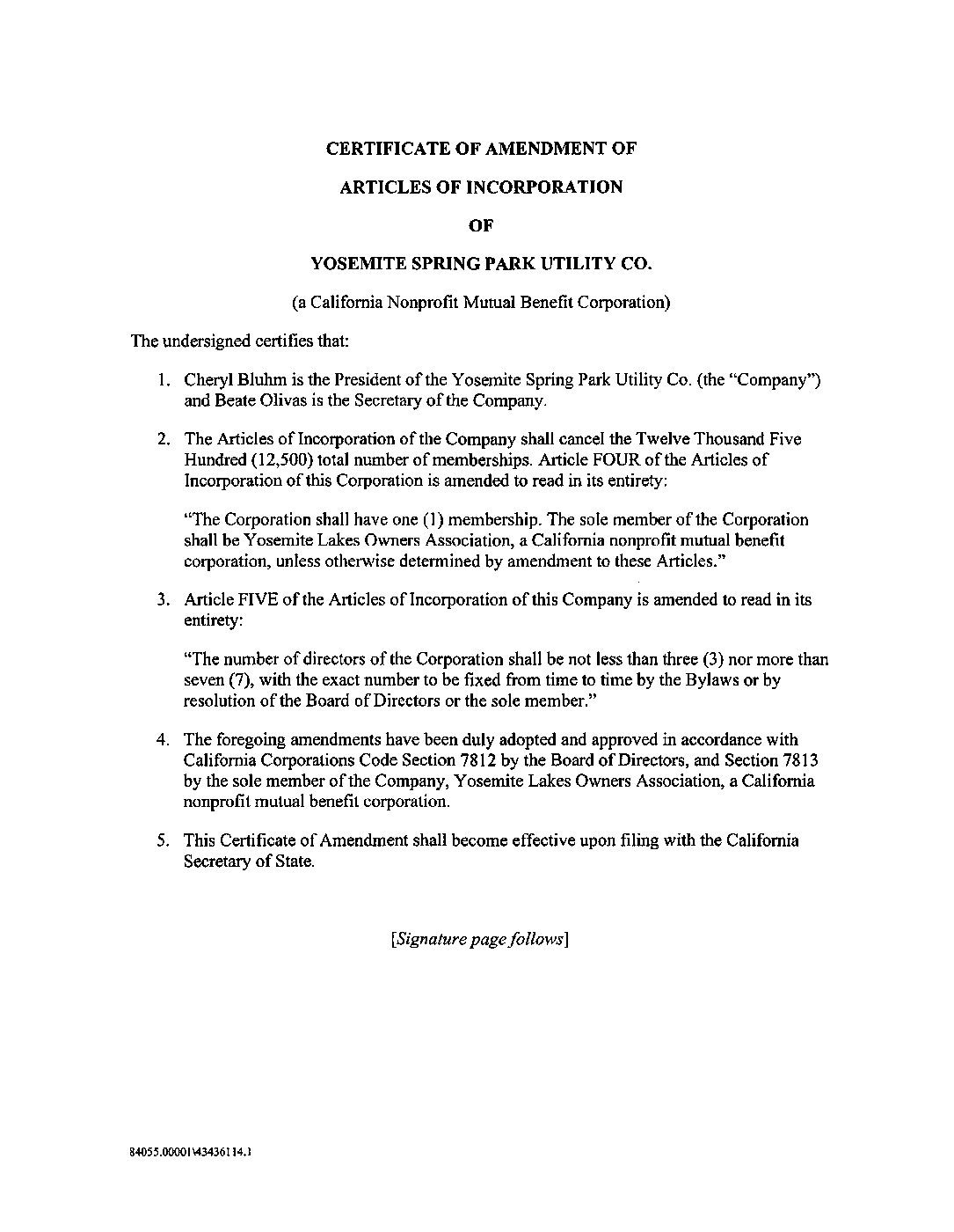 We have several main wells that provide clean, healthy water for each of the lots and homes. We manage and operate Yosemite Spring Park Utility Company (YSPUC) with a separate board of directors and have employees that work for YSPUC to maintain the system.